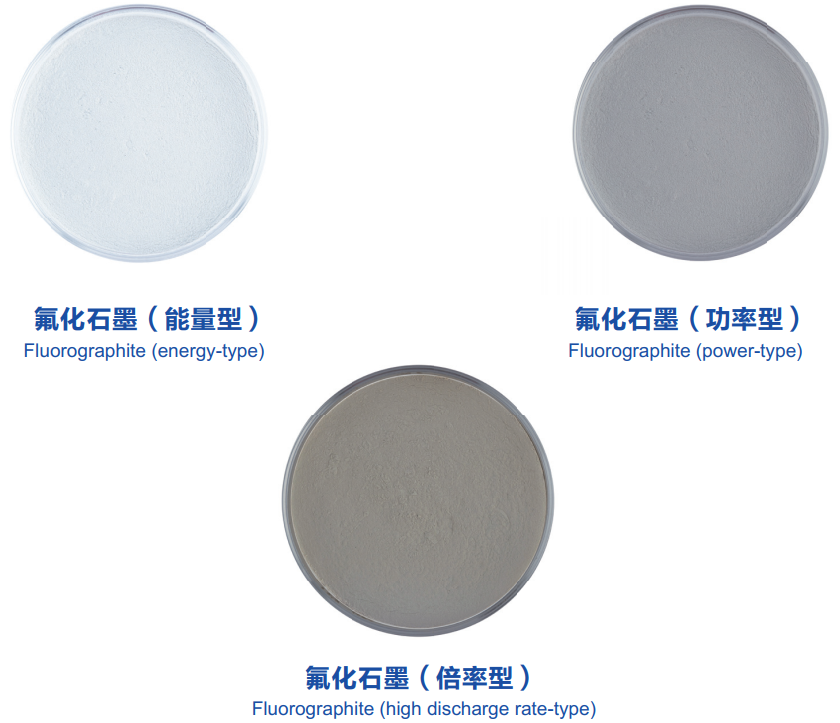 Fluorographite is used as cathode material of lithium-fluorocarbon batteries, at the discharge rate of C/10, it can be applied in energy-type, power-type and high discharge rate-type primary batteries.